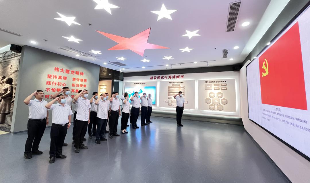 重溫入黨誓詞,永葆入黨初心。在宣誓廳里,面對鮮紅的黨旗,黨員們舉起右拳重溫入黨誓詞,鏗鏘有力的誓言,傳達出大家堅定不移跟黨走的心聲。