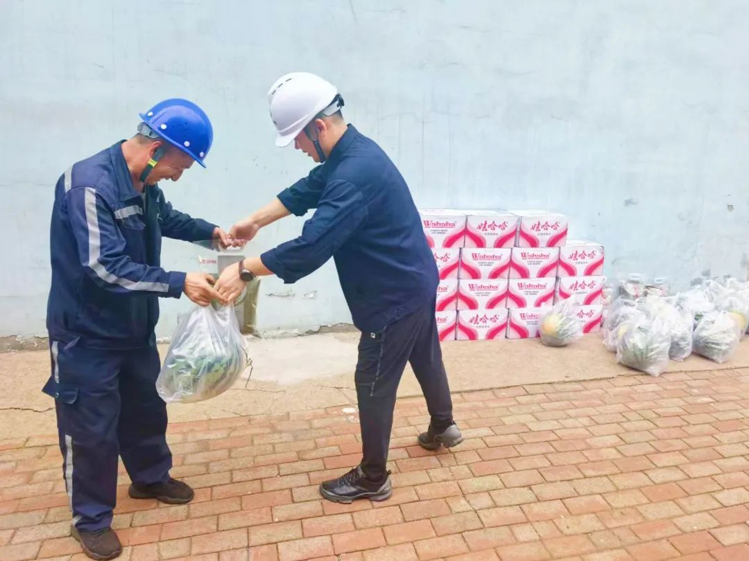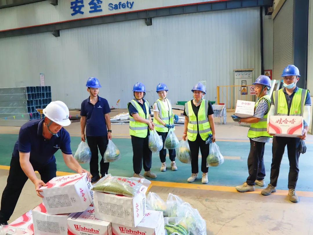 期間,慰問(wèn)小組先后來(lái)到藍(lán)色種業(yè)項(xiàng)目、輕量化汽車(chē)智能制造項(xiàng)目、山鋼環(huán)保項(xiàng)目、裝配式建筑產(chǎn)業(yè)園等項(xiàng)目,將西瓜、綠豆、礦泉水等消暑用品送到各單位一線員工手中,并仔細(xì)查看各單位防暑措施落實(shí)情況。
