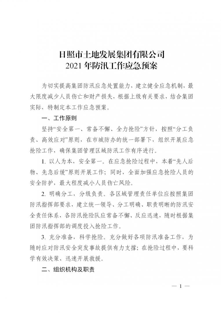 日照市土地發(fā)展集團(tuán)有限公司 2021年防汛工作應(yīng)急預(yù)案