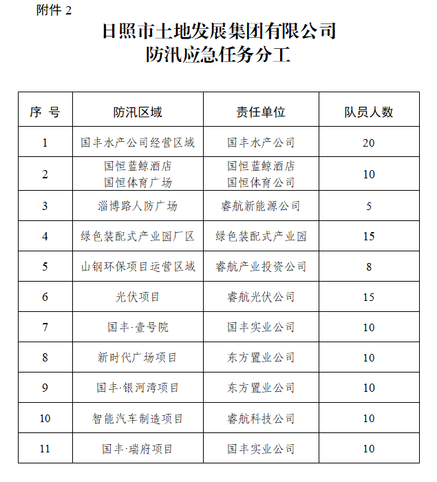 2.日照市土地發(fā)展集團有限公司防汛應急任務分工